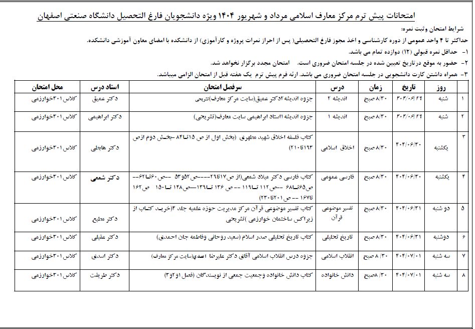 اطلاعيه پيش ترم مرداد و شهريورماه 1404 فایل پیوست اندازه اطلاعيه پيش ترم مرداد و شهريور1404(2).doc اصلاحيه.pdf 68.45 کیلوبایت
