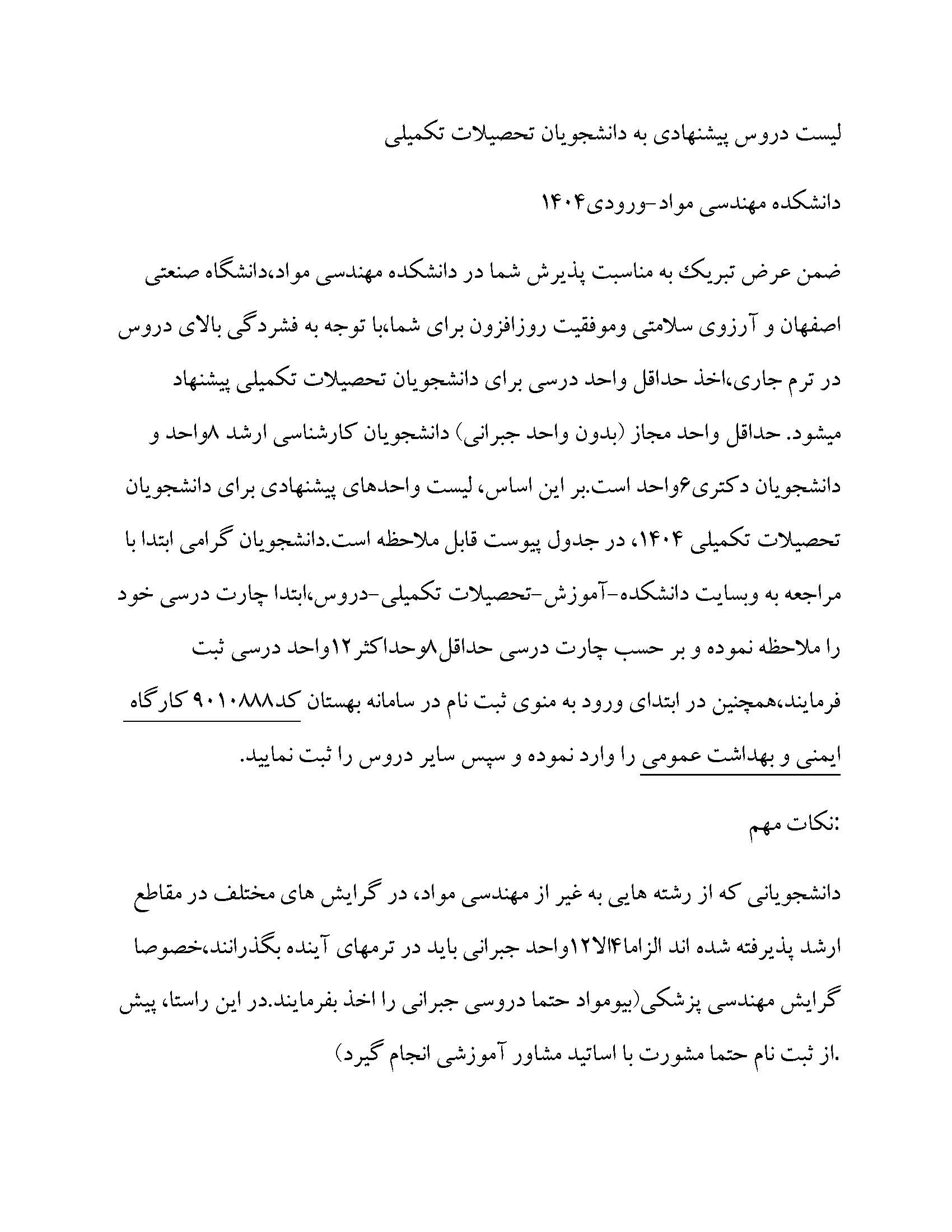 دروس ارائه شده به همراه زمان و مكان برگزاري كلاس ويژه دانشجويان ارشد1404_0.xlsx | 13.83 کیلوبایت |