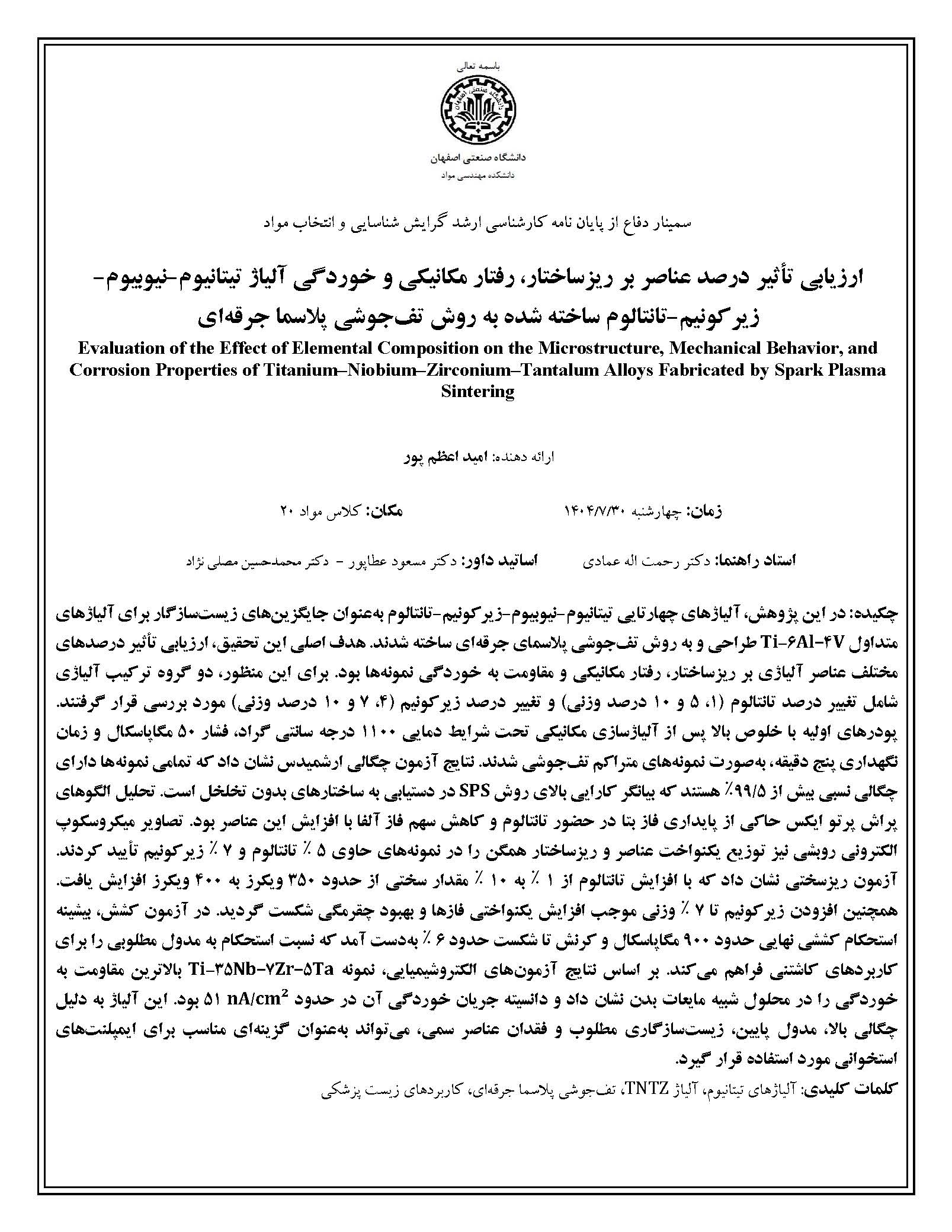 دفاع پايان نامه ارشد آقاي اميد اعظم پور