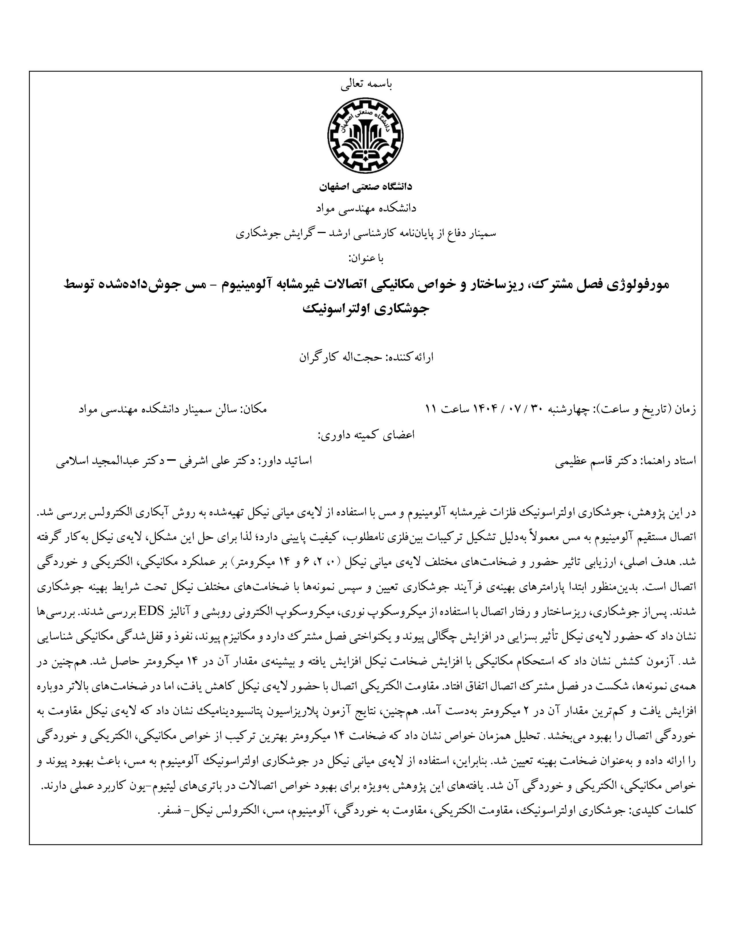دفاع پايان نامه ارشد آقاي حجت الله كارگران