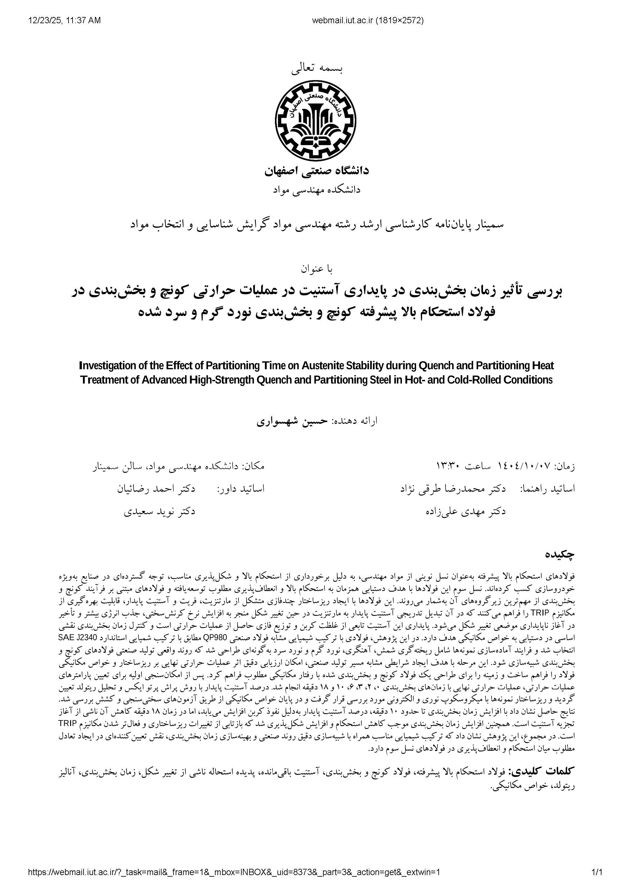 دفاع پايان نامه ارشد آقاي حسين شهسواري