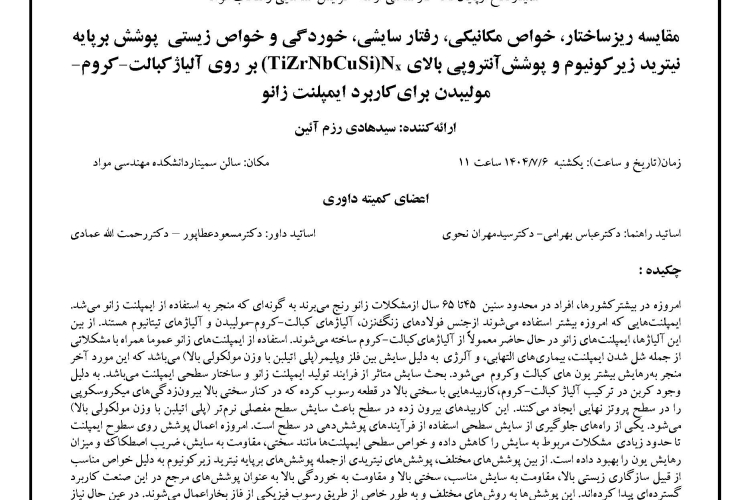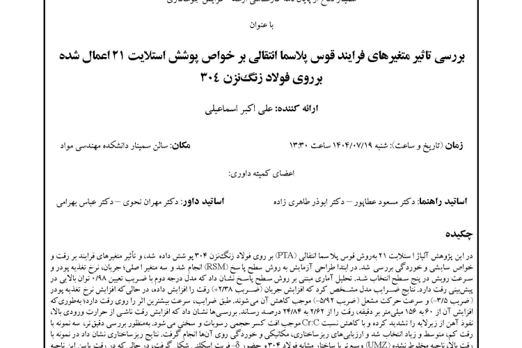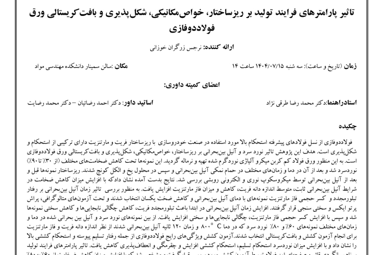 سمینار علمی نانو مکانیزم ها و میکرو مکانیزم های بهبود شکل پذیری فولادهای پیشرفته در فرآیندهای شکل دهی سریع با موج
