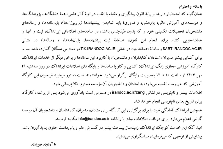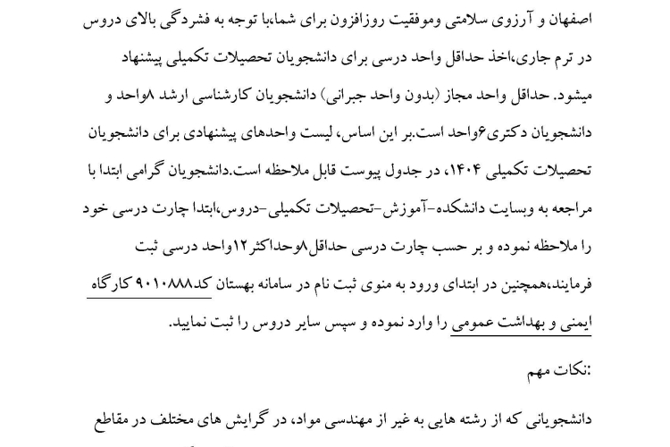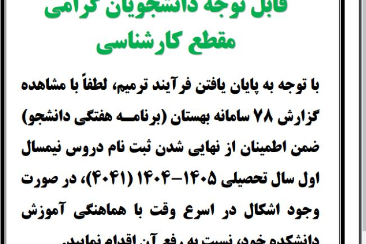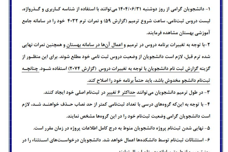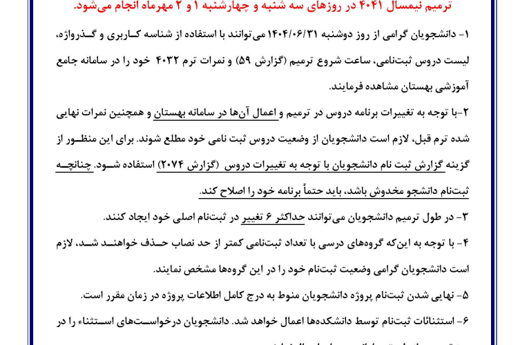 اطلاعيه پيش ترم مرداد و شهريورماه 1404