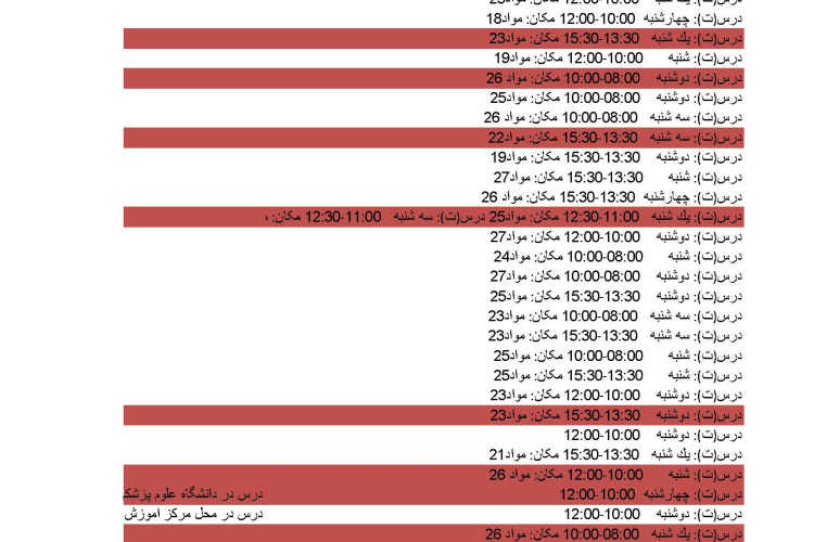 اصلاحيه جدول نهايي زمان برگزاري امتحانات ميان ترم دروس پر جمعيت نيمسال 4041